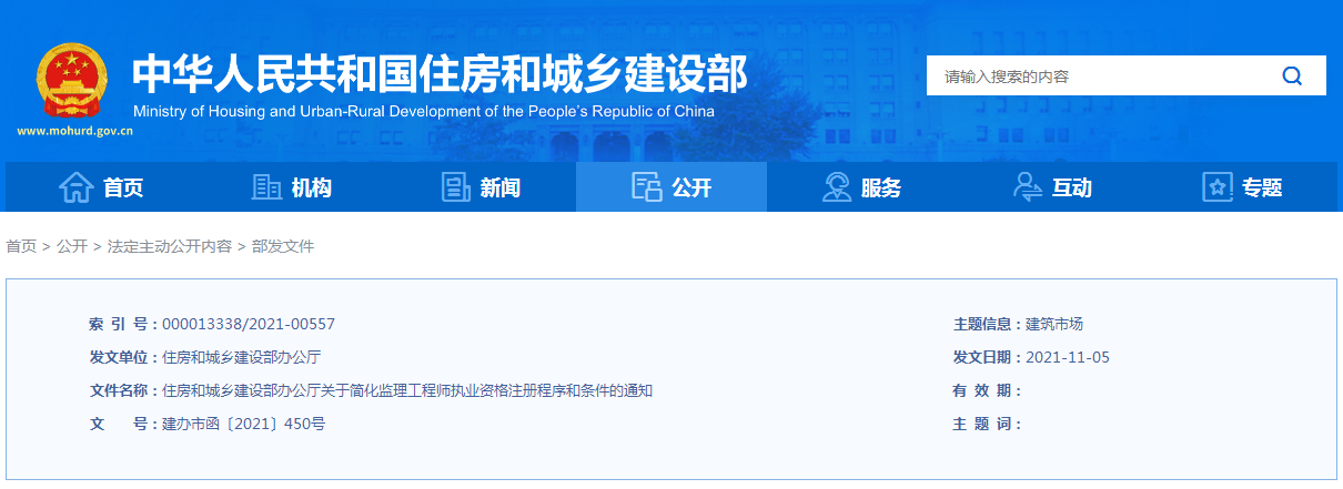 日前,住建部網站公布了《關于簡化監理工程師執業資格注冊程序和條件的通知》,將監理工程師注冊的程序和條件進行了優化,原文如下: