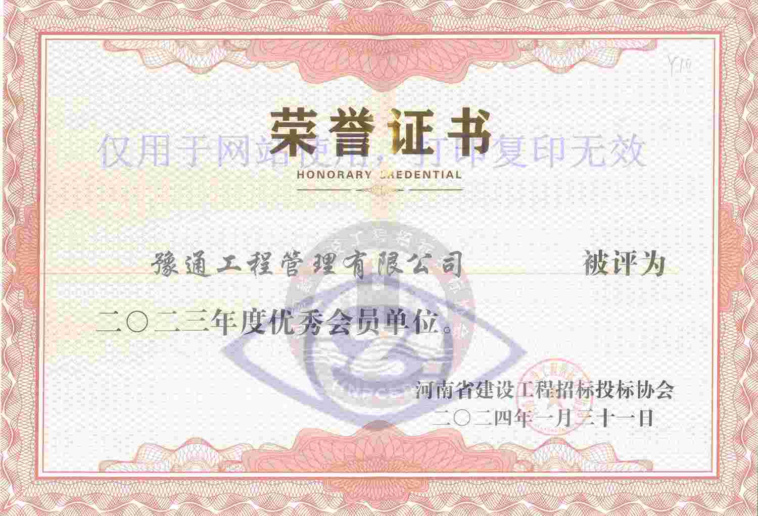 近日,河南省建設工程招標投標協會發布了《河南省建設工程招標投標協會關于2023年度優秀會員單位評選結果的通知》(豫建招協字〔2024〕6號),豫通工程管理有限公司榮獲“2023年度優秀會員單位”稱號。