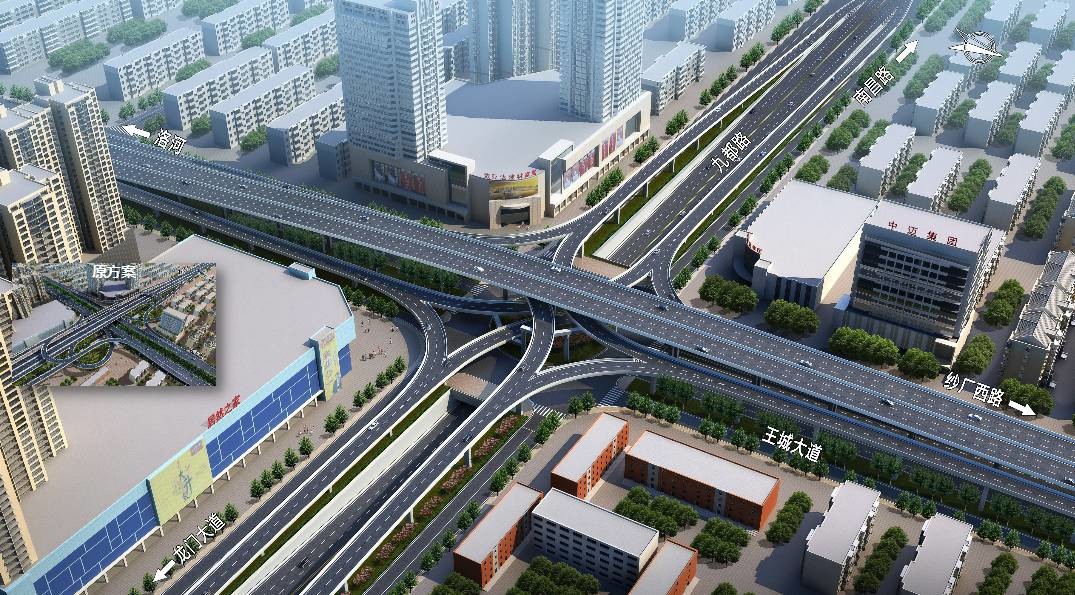 我公司中標為二標段:隴海鐵路橋橋南—王城大橋南,長5.12公里。高架主線為雙向6車道,設計時速為80km/h,地面為雙向6車道,設計時速為60km/h。標段內含王城大道與紗廠西路互通式立交,沿紗廠西路和解放路向洛陽火車站方向設置高架橋;王城大道與九都路菱形互通式立交,其中九都路下穿王城大道隧道;局部設置簡易式上下匝道橋。