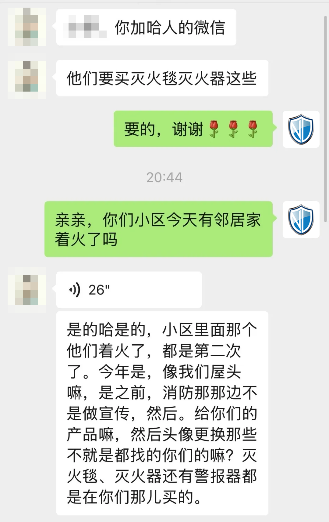 劉女士的分享很快引起了鄰居們的關注。王女士(化名)是第一個聯系安康諾盾客服的:“今年小區都發生兩起火災了,家里還是準備點滅火的器材,萬一發生火災還能用上,聽了劉女士的介紹,立馬下單了一套?!?/strong>